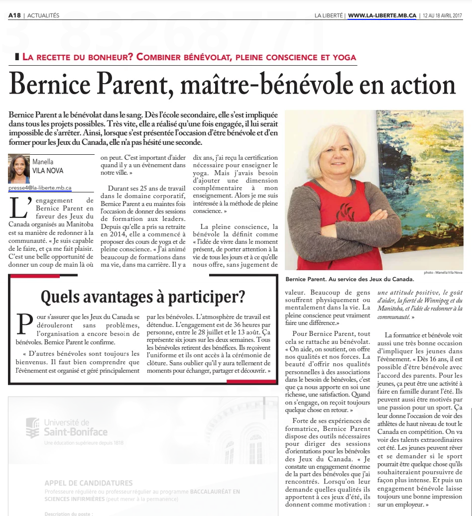 April 12, 2017 – Bernice Parent, maître-bénévole en action