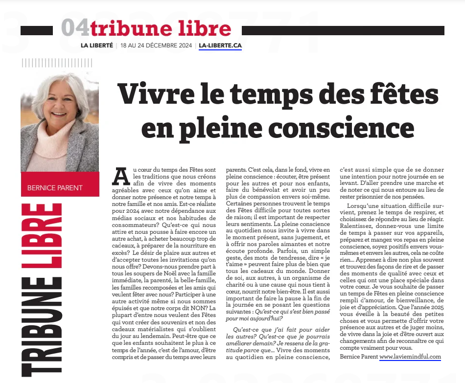 18 décembre 2024 – Vivre le temps des Fêtes en pleine conscience